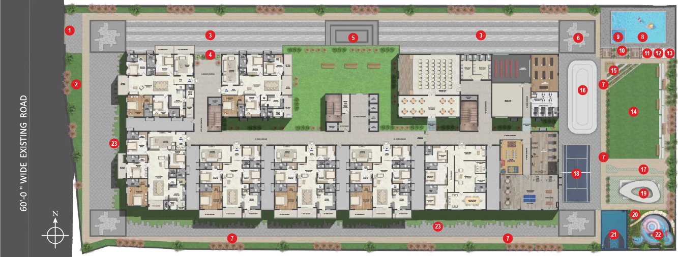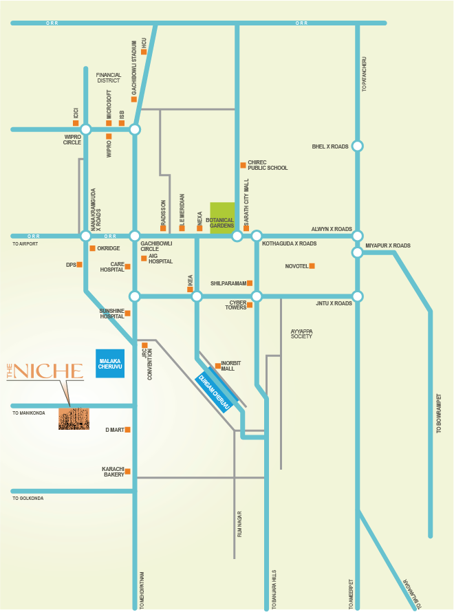 Our amenities are second to none. And when it comes to location, the gated Community is strategically located in Shaikpet, keeping you close to everything you need, right from workplaces to healthcare facilities. Spread across 2 acres of land, with 60% open spaces and excellent ventilation. You'll enjoy easy access to major commercial and entertainment hubs, making it simple to get where you need to go.